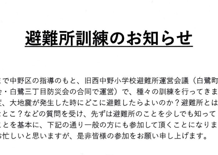 避難所訓練のお知らせ
