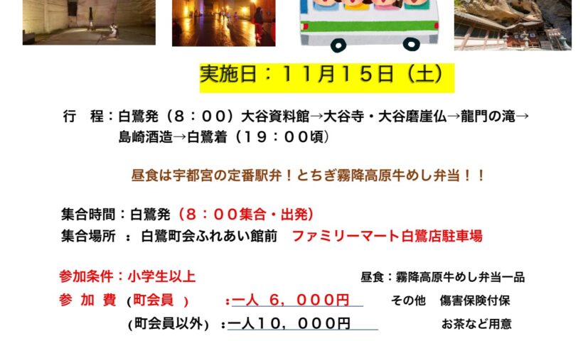 もっと見る 白鷺町会秋のバス旅行 「知られざる日本の美 神秘的すぎる絶景パワースポットツアー」カテゴリー: 行事関係