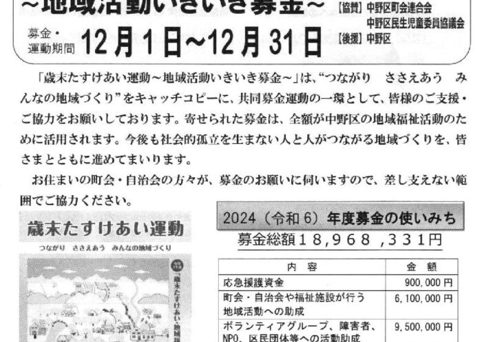 - 2025年12月9日募金等連絡・お知らせ町会員へのお知らせ寄付関係環境福祉部「歳末助け合い運動・募金のお願い」について