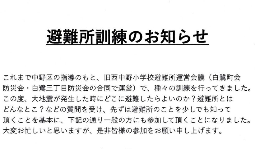 避難所訓練のお知らせ